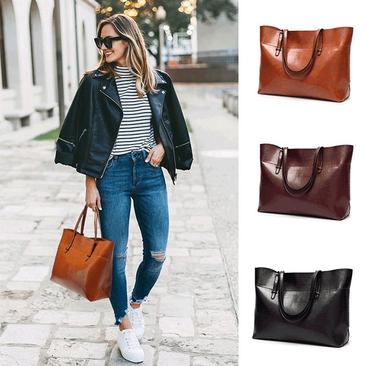 Euramerican Simple Oily Leather Tote Bags